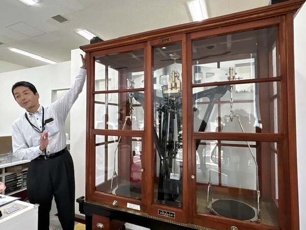 2001年まで実際に使用されていた「基準手動天秤」。工場で使用する分銅の検定に使われていたそうです。
