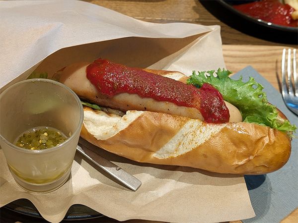 「プレッツェルドッグヴァイスブルスト」はドイツバイエルン地方の伝統的なソーセージ、ヴァイスブルストをプレッツェル生地で挟んだホットドッグです。プレッツェル生地が香ばしくさっぱりしているのでヴァイスブルストの味が引き立っていました。