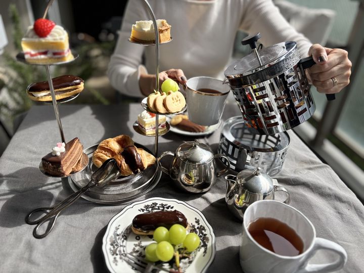準備が整ったら、あとは大切な人とゆったり味わうだけ。ホテルのアフタヌーンティーのような華やかさはないけれど、こうして穏やかに流れるひとときがいちばん心に残ります。