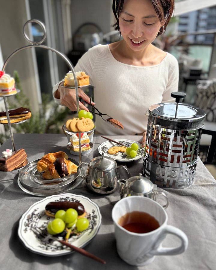 10月に入ると都内のホテルでは秋のアフタヌーンティーが始まりますが、紅茶好きとしては時間制限に追われず、もっとゆっくりおしゃべりを楽しみたい…! そんな思いから、自宅の小さなベランダでアフタヌーンティーを開くことにしました。