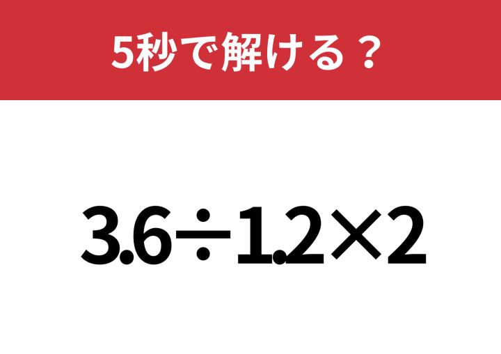 分からないなんてことはないですよね?「3.6÷1.2×2」5秒で解ける?