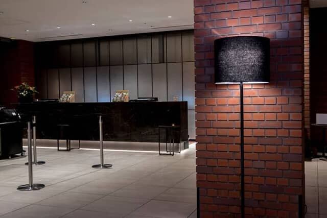 シックで落ち着いた雰囲気のロビー。傘の黒いフロアスタンドから赤レンガに投げかける灯りは、港町横浜の雰囲気十分。アロマディフューザーも設置され、四季に合わせてエッセンシャルオイルの優しい香りが漂います。