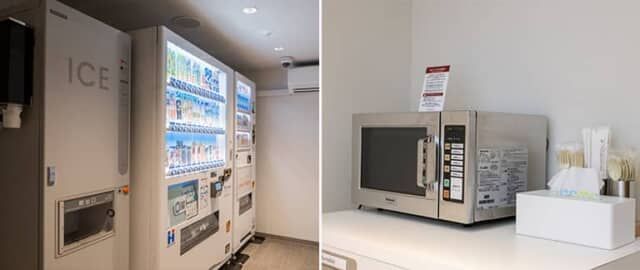 館内にはコインランドリーやドリンクの自販機、電子レンジなども設置。旅先でも快適かつ便利に過ごせます。