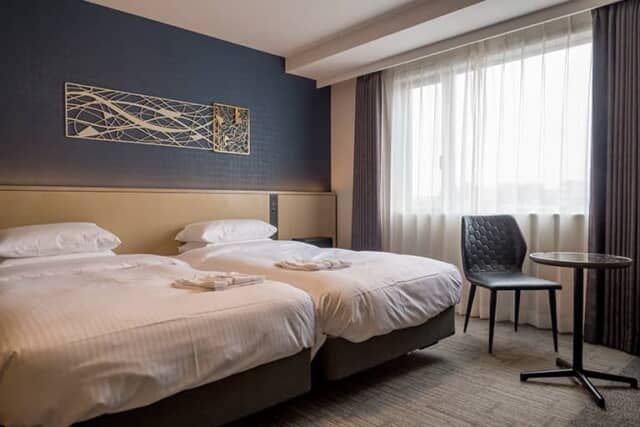 スーペリアツインルームは27平米の広さで、110cm×203cmのベッドが2台並ぶ客室です。硬さの違う枕が2つ用意され、ナイトウエアはセパレートタイプです。