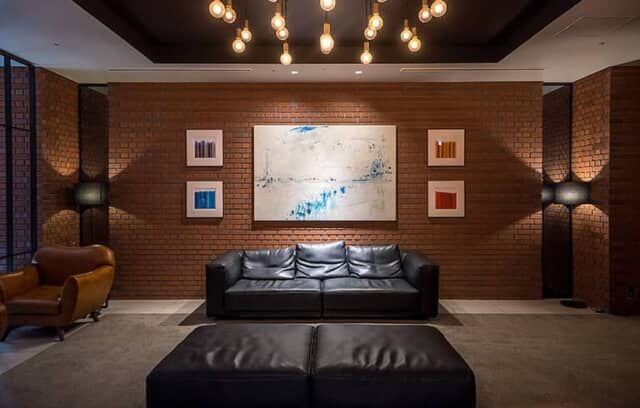 赤レンガの壁が印象的なロビーには、座り心地のいい椅子やソファーが置かれます。