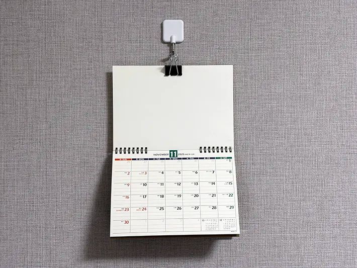 画鋲で穴を開けることなく、カレンダーを見やすく飾ることができました。
