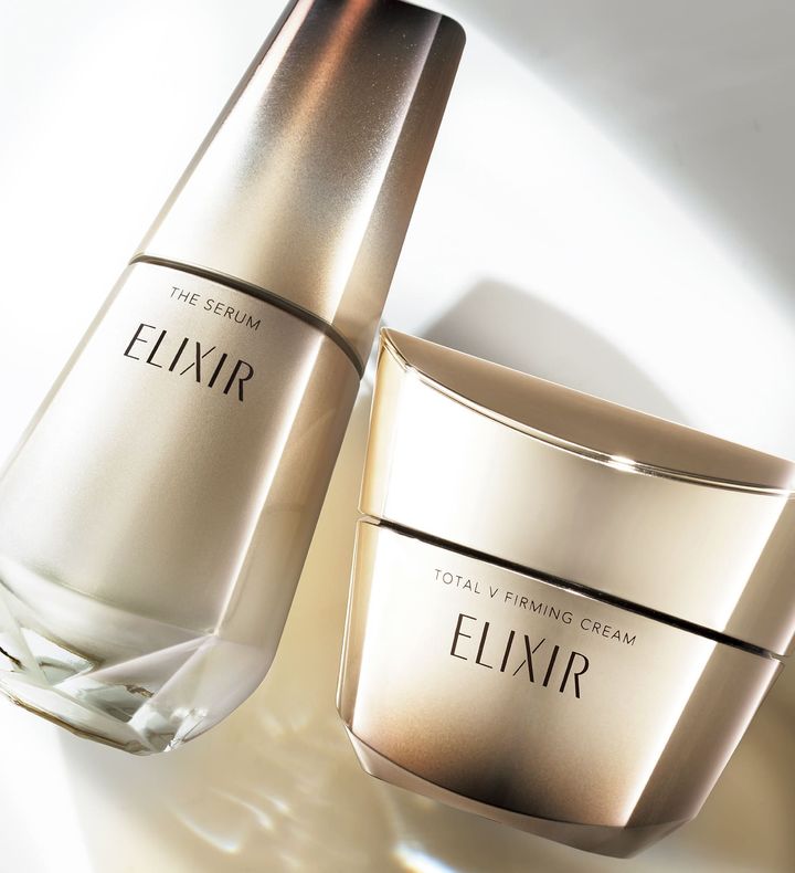 左:昨年の登場以来、35賞(※1)ものベストコスメに輝き、美容液界に旋風を起こした名品。エリクシールが誇るオールスター成分を含む、21種類の美容成分を配合。大人の美肌要素に一気にアプローチする話題の高機能エイジングケア美容液。エリクシール ザ セラム aa[医薬部外品]50ml ¥8,910(エリクシール)右:〝ゆるみ(*)原因に全方位ケア〟が支持され、出荷個数100万個超えの大ヒットクリーム。ピタッと引き締めるように肌に密着する心地よさにハマり、リピート中のファンも多数。エリクシール トータルV ファーミングクリーム 50g ¥11,000(エリクシール)
