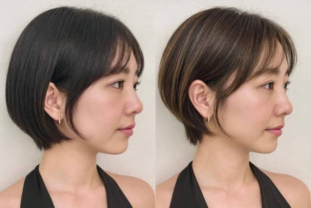 解決策は「ハイライトを加える」「暗髪にするならアッシュやグレージュを選ぶ」こと。少しでも色味や抜け感を足すだけで、肌映えが改善されて顔全体が明るく見えるようになります。