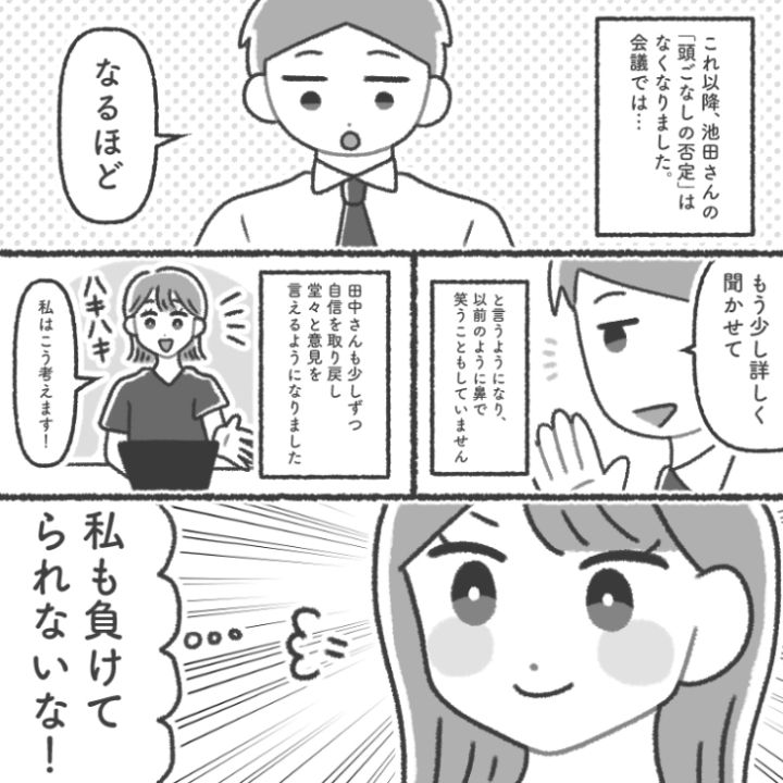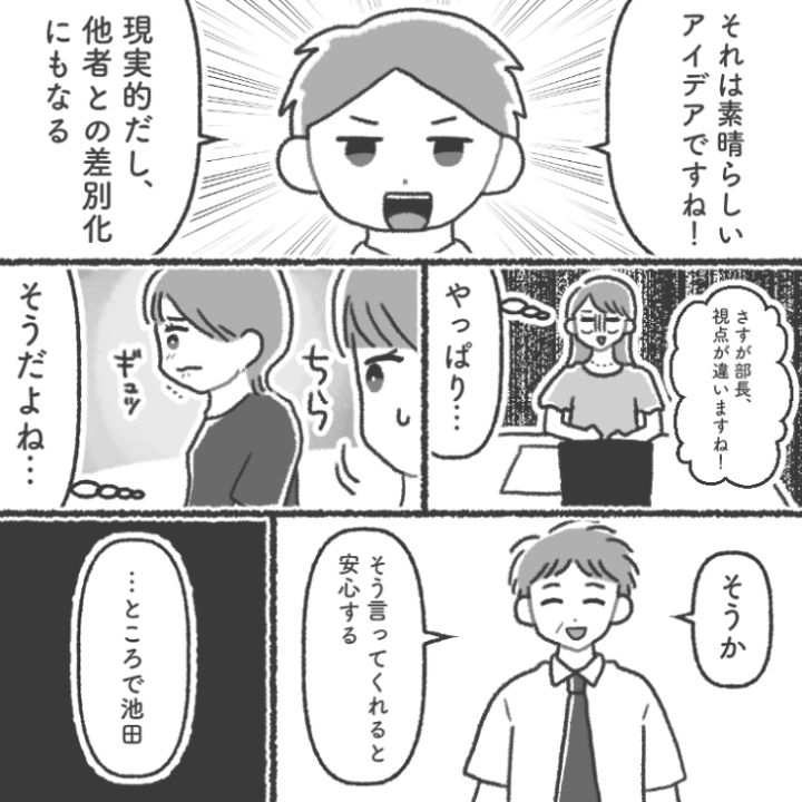 同じ提案でも部長が発言すると全肯定した課長。誰が言うかによって態度を変えていたことが証明され、ぐうの音も出なくなってしまいました。