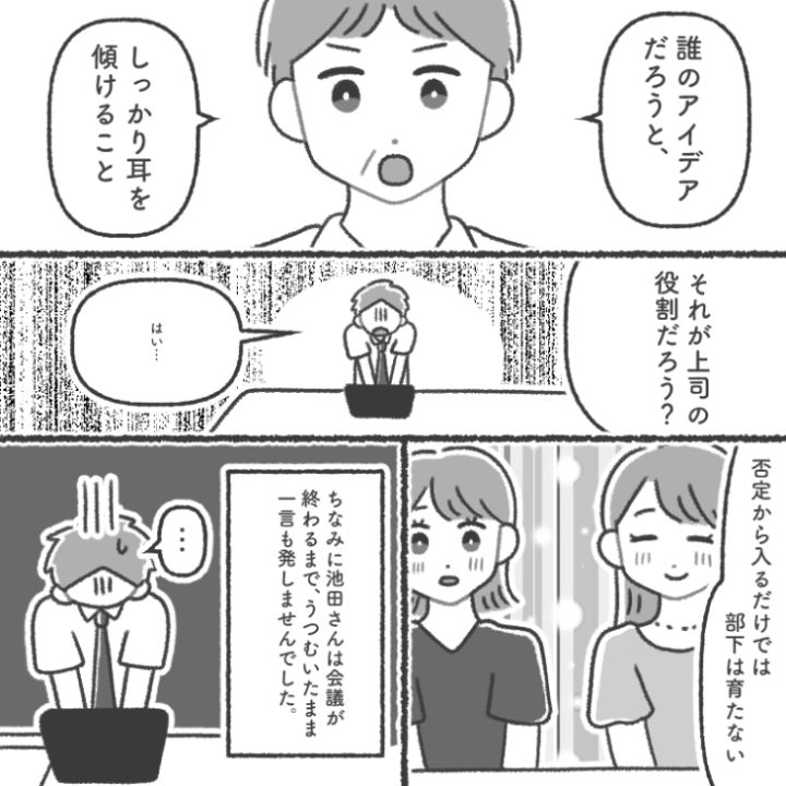 「そんなアイディア誰でも思いつく」部下が提案する内容を全て否定する課長!部長に相談すると、過去に後輩が発表した全く同じ案を部長が会議で提案→すると課長は・・・