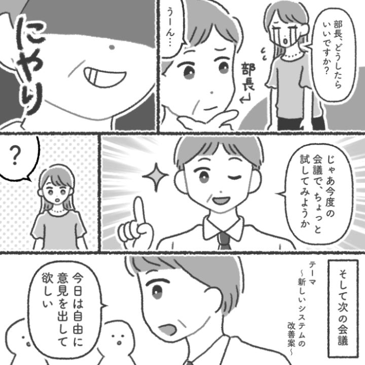 3. 「そんなアイディア誰でも思いつく」部下が提案する内容を全て否定する課長!部長に相談すると、過去に後輩が発表した全く同じ案を部長が会議で提案→すると課長は・・・
