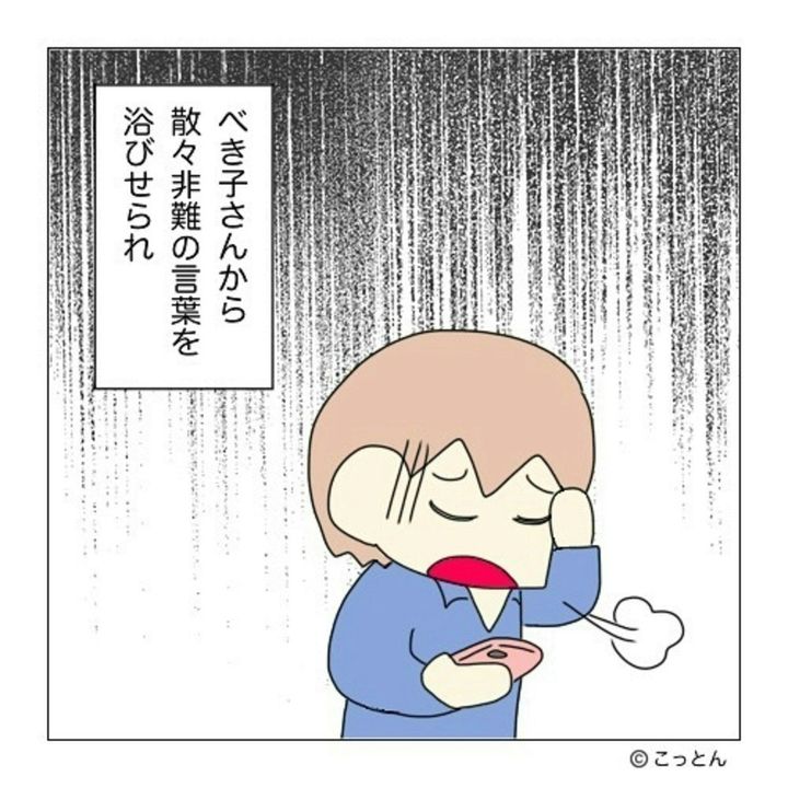 このため、しばしば開かれる子ども会の役員会にも時間通りに行くことができる日ばかりではありませんでした。しかし会長のべき子さんは役員会に遅れてくる桃井さんを責める場面が多く、自分の思い通りに桃井さんが動かないことに対し「役立たず」など厳しい言葉を浴びせることもありました。