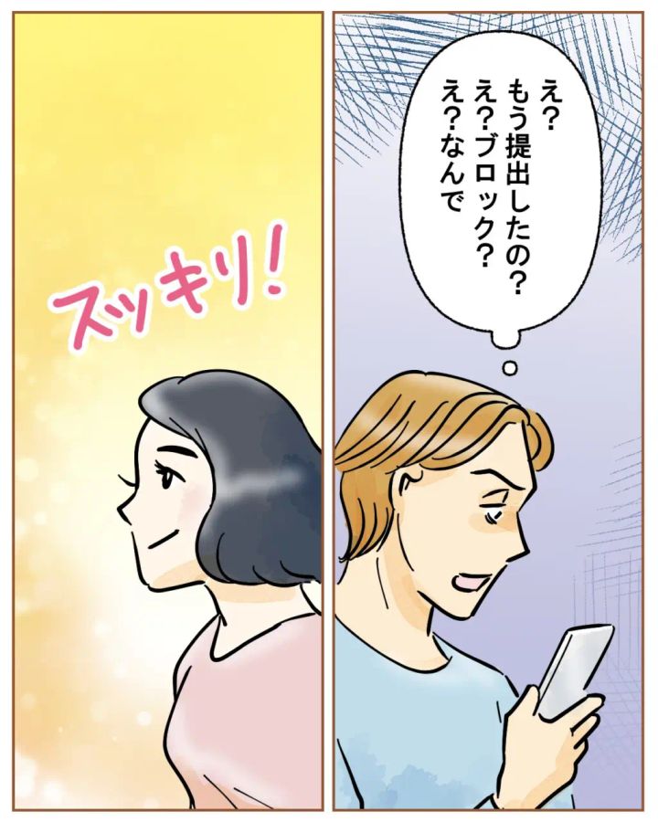 3. 離婚届提出は想定外「もう提出したの?なんで」焦る夫とスマホブロックでスッキリの妻。夫の嫌いなところ|ママ広場マンガ