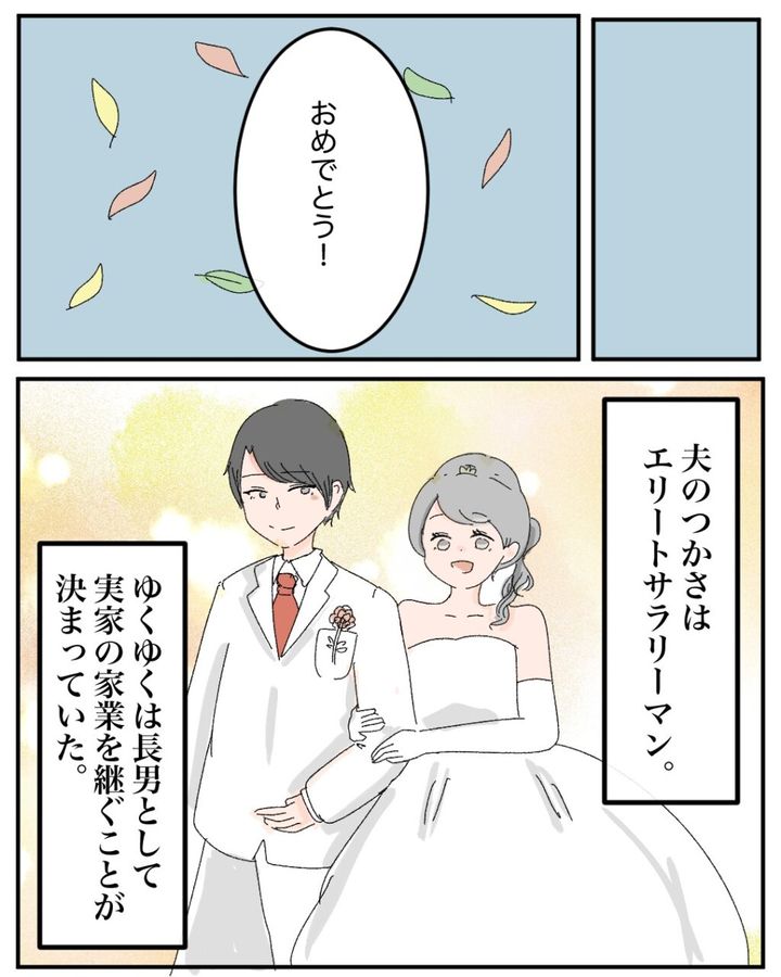 「おめでとう!」みんなに祝福された私。夫のつかさはエリートサラリーマン。ゆくゆくは長男として、実家の家業を継ぐことが決まっていました。