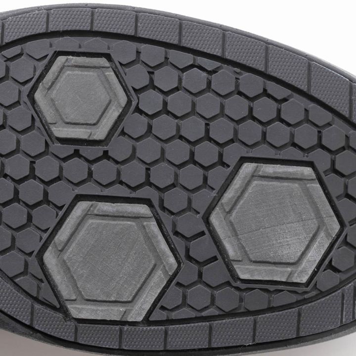 大小の六角形のラバーが靴底に配置され、凍結路面でも高いグリップ力を発揮。