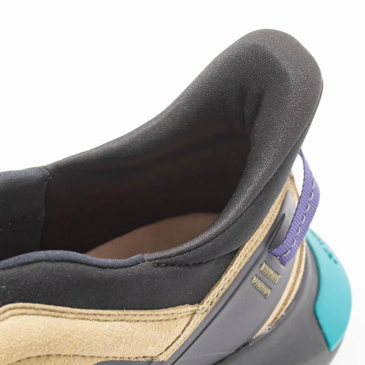 適度に硬く靴ベラのような形状のかかと。すべりがよくスポンと履ける。