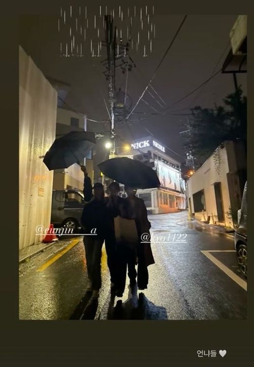 スジは10月11日、自身のSNSに「お姉さんたち」とコメントを添え、1枚の写真を投稿した。公開された写真には、スジがソン・ヘギョ、アン・ウンジンと共に、夜の雨の中で傘を差しながら歩いている姿が写っている。