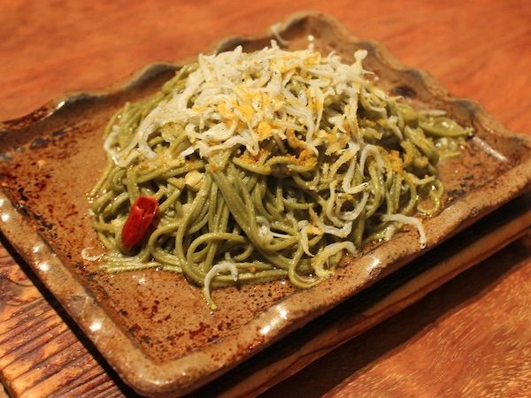 茶そばのペペロンチーノ シラスとイタリア産からすみがけ(1,078円) 〆にぴったりの一品です。メニュー表見た時から、これは食べてみたいと気になっていました。茶そばの風味豊かな和の香りに洋のコクが重なり、最後まで“和洋飯”の名にふさわしい満足感でした。