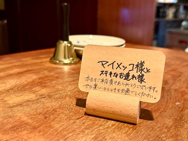 テーブルにはウェルカムメッセージが添えられ、思わず笑顔に。そんな温かなおもてなしから始まる食の時間に、期待が高まります。