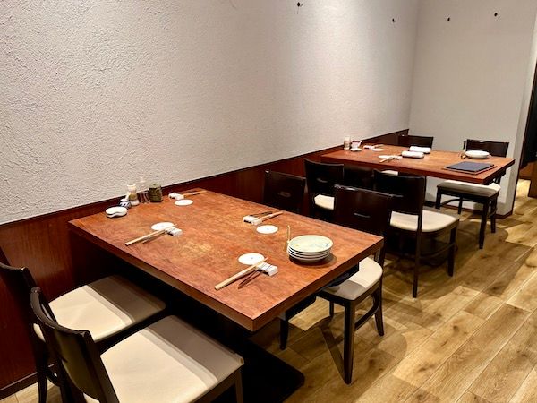 奥にはゆっくり過ごせるテーブル席や、3つの個室もあり、シーンに合わせて使い分けが可能。友人同士の食事はもちろん、デートや会食など、少し特別な日の食事にもぴったりの雰囲気です。取材に訪れた日、個室は満室でした。