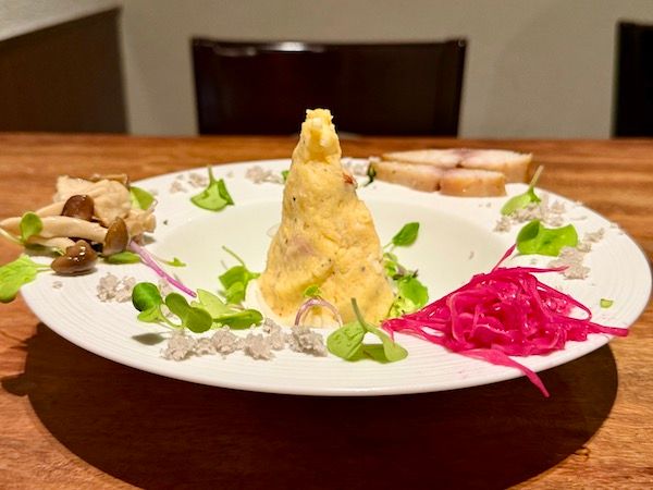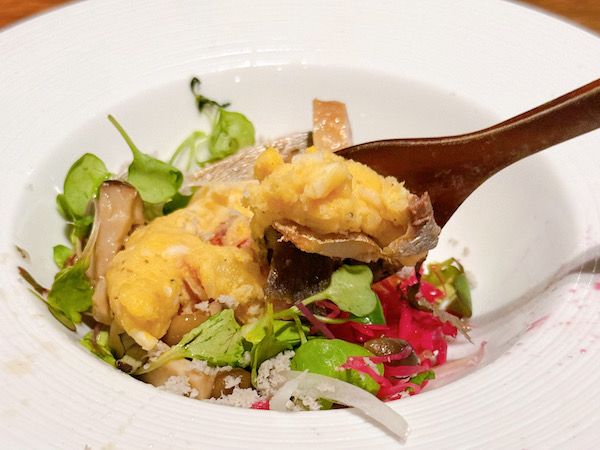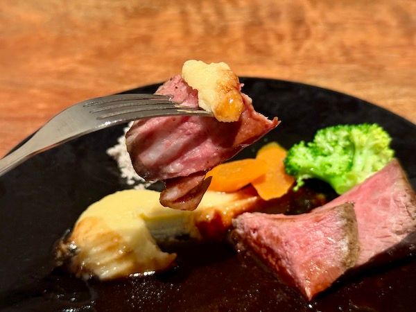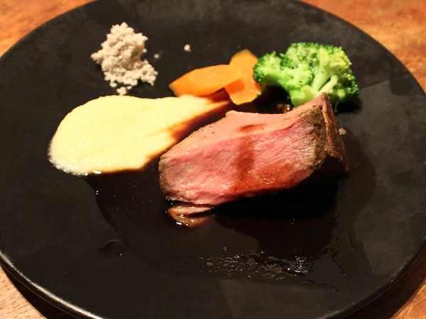 お肉はしっとり柔らかく、噛むたびに肉の旨みがじゅわっと広がります。お酒のペアリングはワインでも日本酒でも合いそうです。提供まで少し時間をかけて仕上げるのも納得の一皿でした!