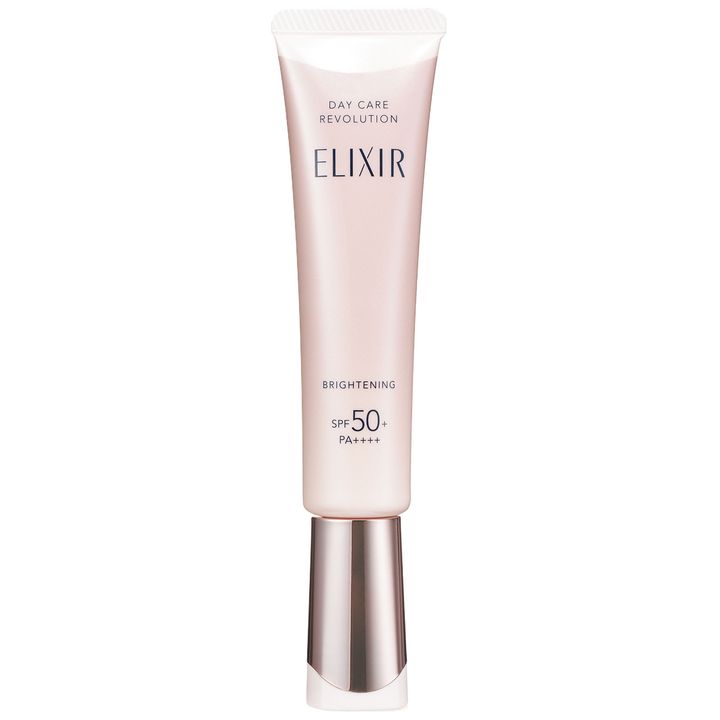 「UV効果最高値に下地や保湿も兼ねた朝乳液が、同時に先進の老化ケアと美白もこなす完全マルチの一本。本気の最先端ケア搭載で3000円台はありえない奇跡的タイパ&コスパ。良心と使命感に溢れた国民的名品」。デーケアレボリューション ブライトニング + ba SPF50+・PA++++ [医薬部外品]35g ¥3,740〈編集部調べ〉(エリクシール)