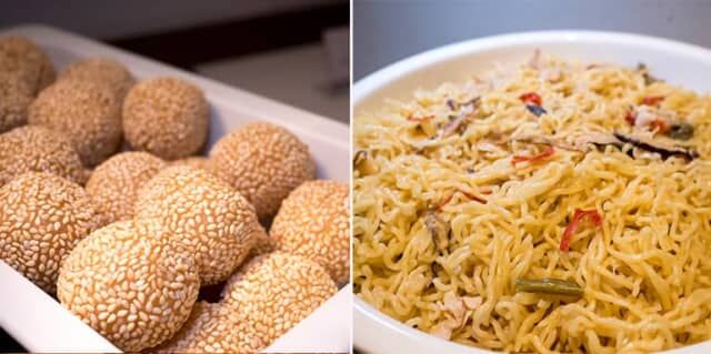 ▲「やわらか胡麻団子」と「上海塩焼きそば」