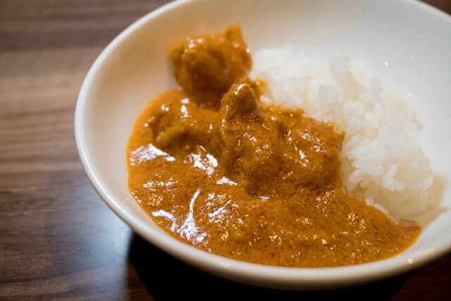 カレーフェアの「バターチキンカレー」は、スパイス使いが穏やかで、奥行きのあるコクを楽しめる一品。ゴロゴロ入った鶏の旨味も楽しめます。