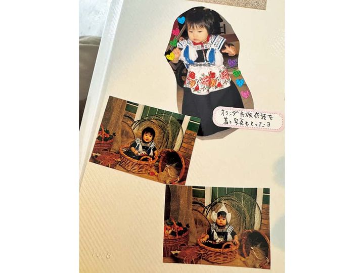 結婚後、22歳で渡蘭し、長女の“日帰り出産”を経験。家族の時間を何よりも大切にするオランダの文化を体感。アルバムにはまだ10カ月だった民族衣装を着た長女が。