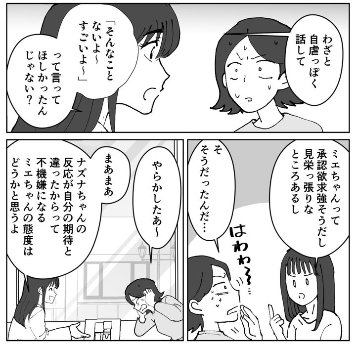 アイコちゃん曰く、ミエちゃんは「すごい」「羨ましい」と言ってほしかったのだそう。まったく気づきませんでした……。