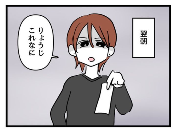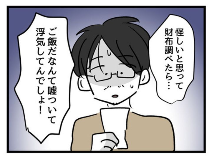 食事をしたから遅くなったという夫のりょうじさんの言葉を一旦は信じたキリコさんでしたが、翌朝、りょうじさんの財布から「バーのレシート」を発見したことでキリコさんの怒りは頂点に達していました。キリコさんの態度は怖く、言い返すのも精一杯になりそうです。