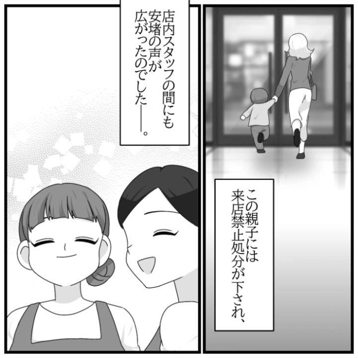 迷惑親子は結局スーパーを出入り禁止にされ、もう二度と主人公の職場に現れることはなかったのでした・・・。