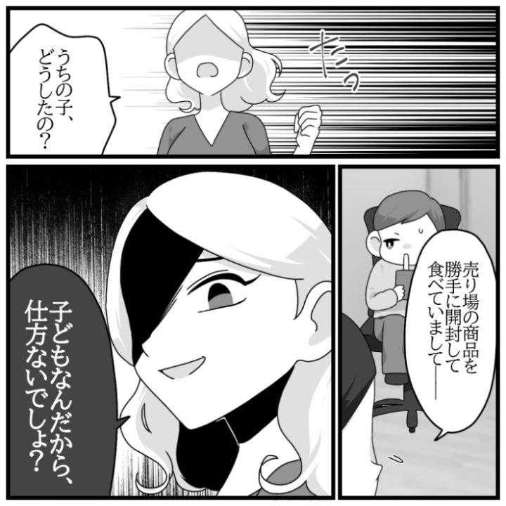 3. 「商品を食べてました」→「子供だから仕方ないでしょ」スーパーで会計前のお菓子を食べていた子供!親がいなかったので防犯カメラで探して伝えると非常識すぎる返答が
