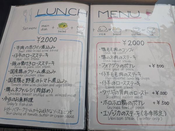 どのメニューにも共通なのが、ごはん、スープ、サラダ、コーヒーが付いていること。お値段は1,300円~2,500円くらいのメニューが平均的のようです。