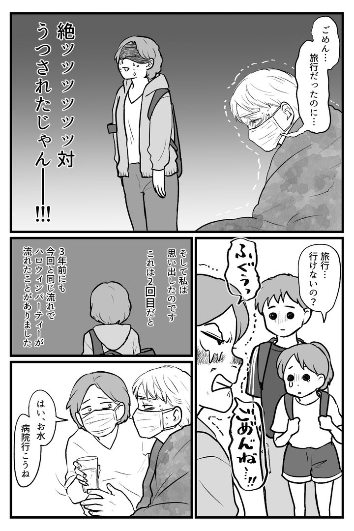 この体調では旅行は難しいと判断し、やむを得ず予定をキャンセルすることにしました。夫は何度も謝っていましたが、私は以前のことを思い出しました。前にもカイリくんの風邪が子どもたちにうつって、予定をキャンセルしたことがあったのです。