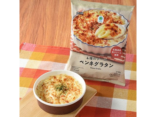 チェダー、ゴーダ、エメンタール、パルメザンの4種類のチーズと、北海道産生クリームを使用したペンネグラタンです。