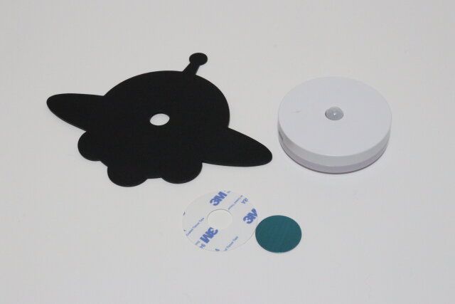 シルエットパネルをセンサーライトの表面に貼り付けるだけで完了です。