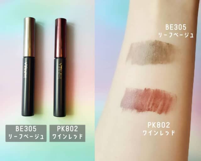 BE305リーフベージュは、グリーンを感じるカーキブラウン。アイメイクを際立たせたいときに、眉のトーンを落ち着かせる“引き算カラー”として活躍します。PK802ワインレッドは、深みのあるバーガンディで、太めの眉にも柔らかさをプラスできます。どちらも軽やかで抜け感のある発色が特徴で、ブラウンメイクとの相性も良好。メイク全体のトーンを統一したいときに便利なカラーです。