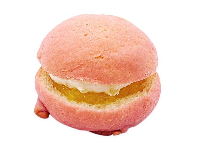 クッキー生地を乗せて焼いたしっとり食感のパンに、青森県産りんごを使用したソースと果肉入りのクリームを挟みました。