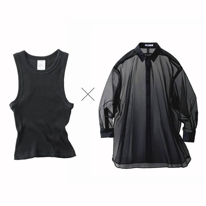 ②「シアーシャツ」×「首詰まりタンクトップ」
