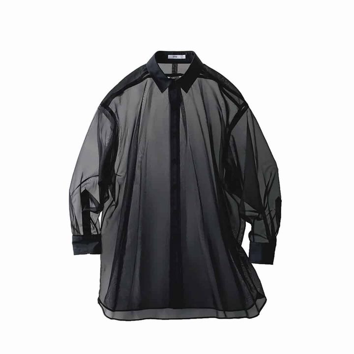 シャツの場合、衿があるので首回りが透けると妙な隙間ができてしまいます。首が詰まったインナーで腕のみシアーが正解。
