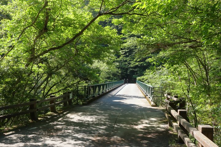 来た道を戻り、飛龍橋に向かいます。こちらは、森林鉄道の線路が通っていた橋で、昭和初期から昭和50年代(1975~)にかけて盛んだった林業の歴史を今に伝えるスポットです。