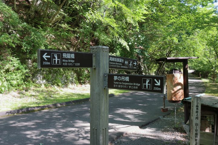 トンネルを出ると、分かれ道。夢のつり橋は右側へ。