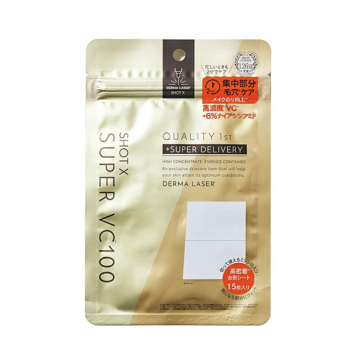 毛穴に作用する高濃度ビタミンCと6%のナイアシンアミドを配合。ダーマレーザー ショットX スーパーVC 100シート 15枚入り ¥660(クオリティファースト)
