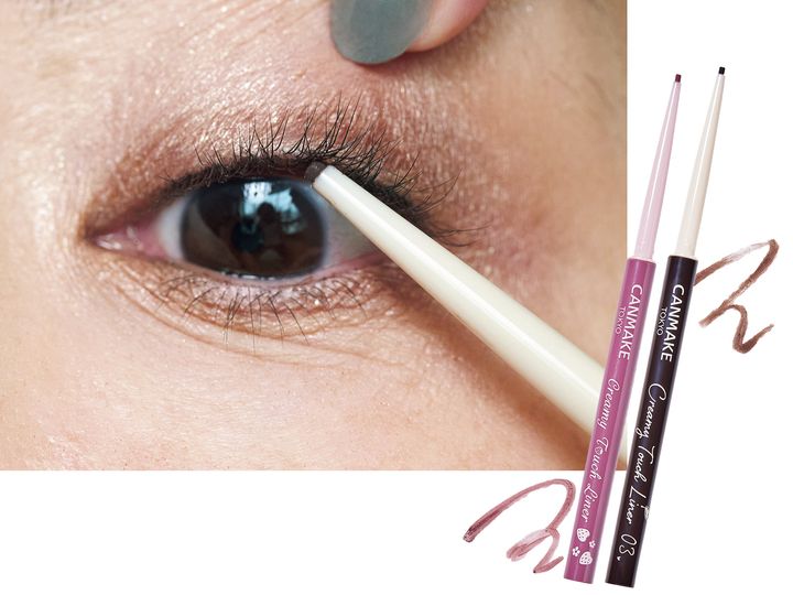 アイライナーは黒や濃茶だけでなく、旬の色を取り入れるだけでぐんと今っぽく。今期ならスモーキーなピンクがおすすめ。目尻に少し入れるのがコツ。キャンメイク クリーミータッチライナー12 ¥715※限定色(井田ラボラトリーズ)