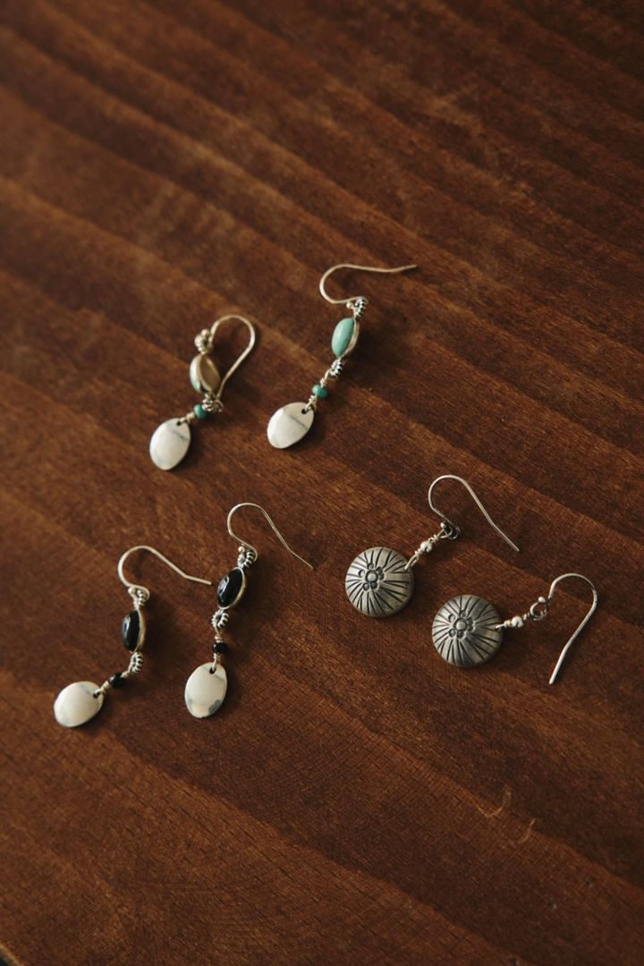 デザート・ムーン・イヤリングはアメリカ・ナバホ族のモチーフから着想を得ていて、アンティーク調のシルバーと繊細な模様によって独特な存在感を放ってくれます。ラグーン・イヤリングは【フォークバイエヌ】のオリジナルデザインに、【アーバニック30】のディテールをプラス。繊細な表情とエスニックな雰囲気が絶妙な塩梅で融合し、耳元をさりげない個性で彩ってくれます。