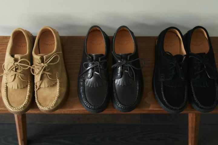 短めのキルトタッセルが目をひくこちらは、北米の先住民がはいていた伝統的なレザーシューズから着想を得た1足。アッパーのざっくりとしたモカ縫いも印象的で、さりげないデザインアクセントにもなっています。ソールに使用しているのは、ビブラム社のクレープアウトソール。クッション性のあるウレタンインソールと相まって、長時間はいていても疲れにくい快適な履き心地を提供してくれます。