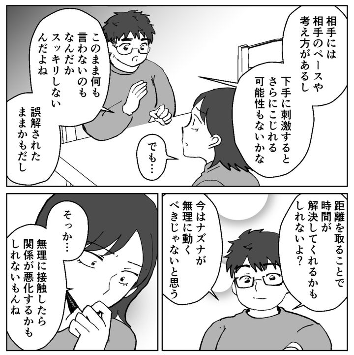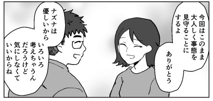 夫の「今は静観するのが一番」という言葉に納得し、今回は夫の言葉に従うことにしました。