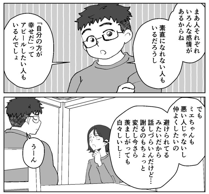 ミエちゃんは少し変わってはいますが、悪い人ではないので仲よくしたいと思っているのです。ただあの一件以来ミエちゃんから避けられているようなので、どうすればいいものか……。