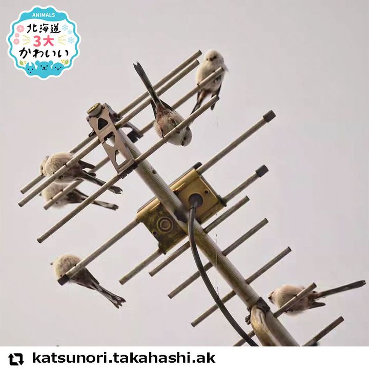 このお写真のキャプションに「自宅のTVアンテナにシマエナガさん、今シーズン初撮り!」とありました。